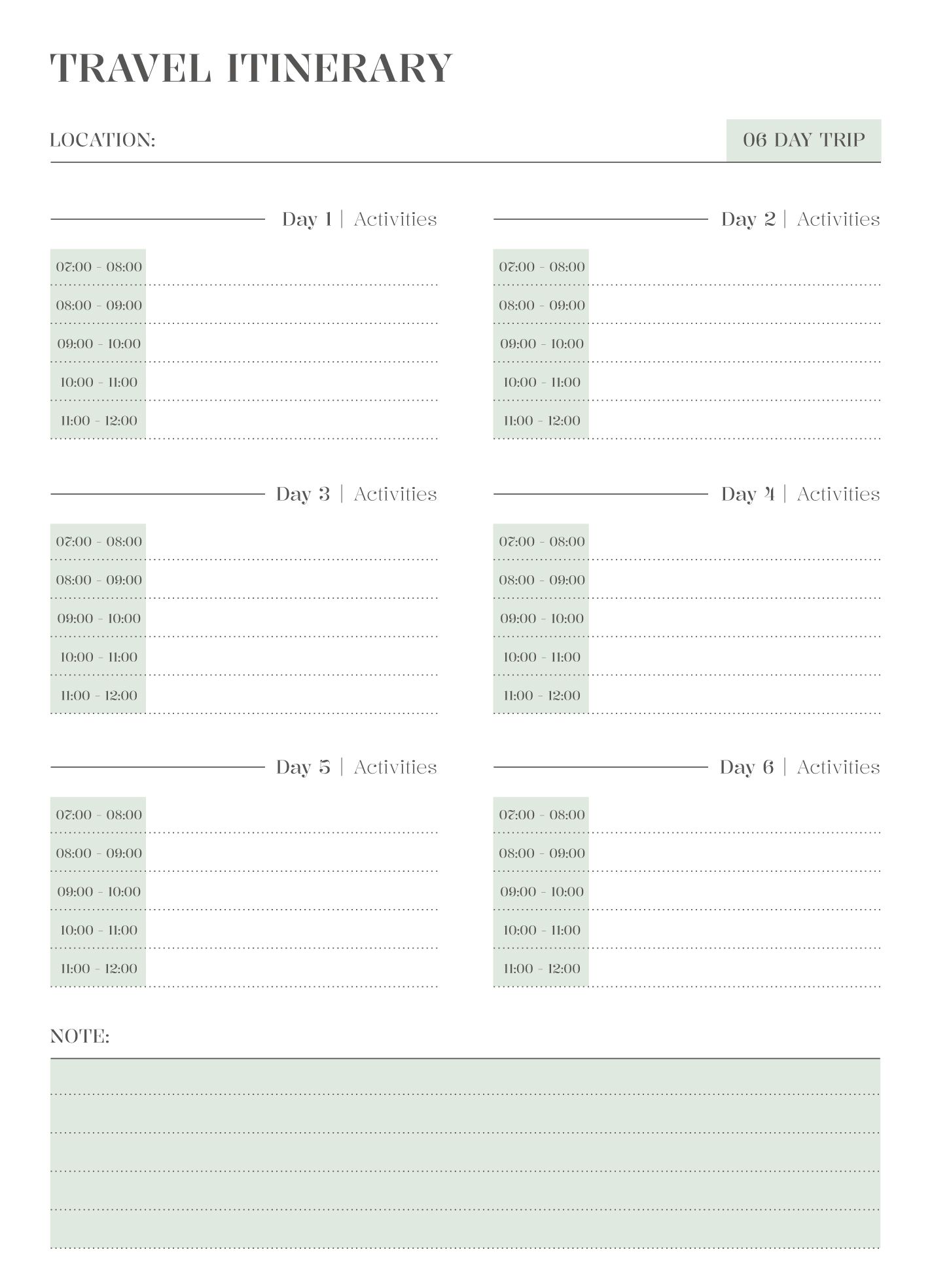 The beauty of a well-designed 6 day travel itinerary template lies in its flexibility. It serves as your personal travel architect, helping you lay down the foundations of your journey before you even pack your bags. Think of it as a skeleton that you’ll flesh out with your unique preferences, ensuring every day is filled with activities that genuinely excite you. This initial planning phase is crucial for maximizing your time and minimizing any potential travel headaches.