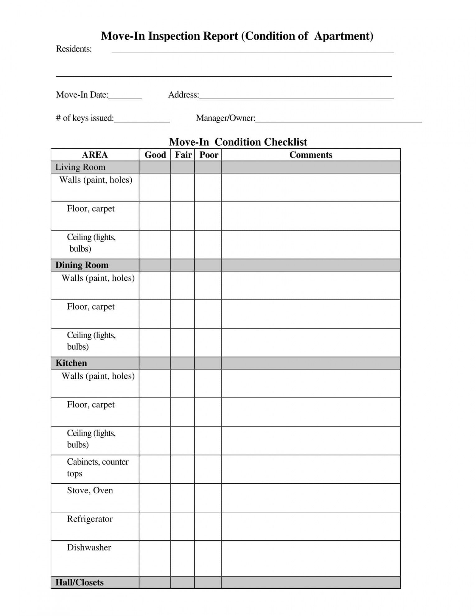 Apartment Checklist Move In Template Images