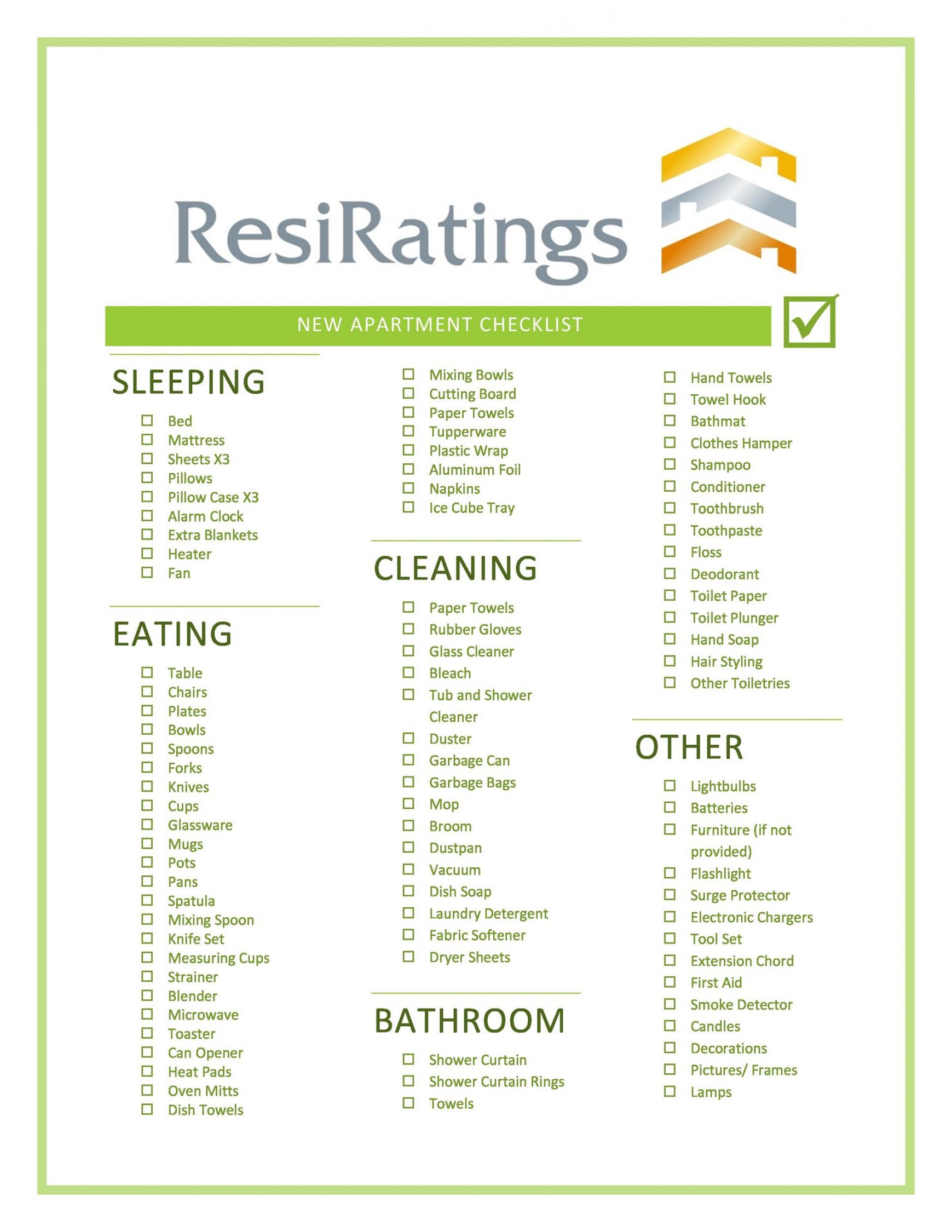 printable first  new apartment checklist  40 essential templates ᐅ templatelab apartment checklist move in template examples