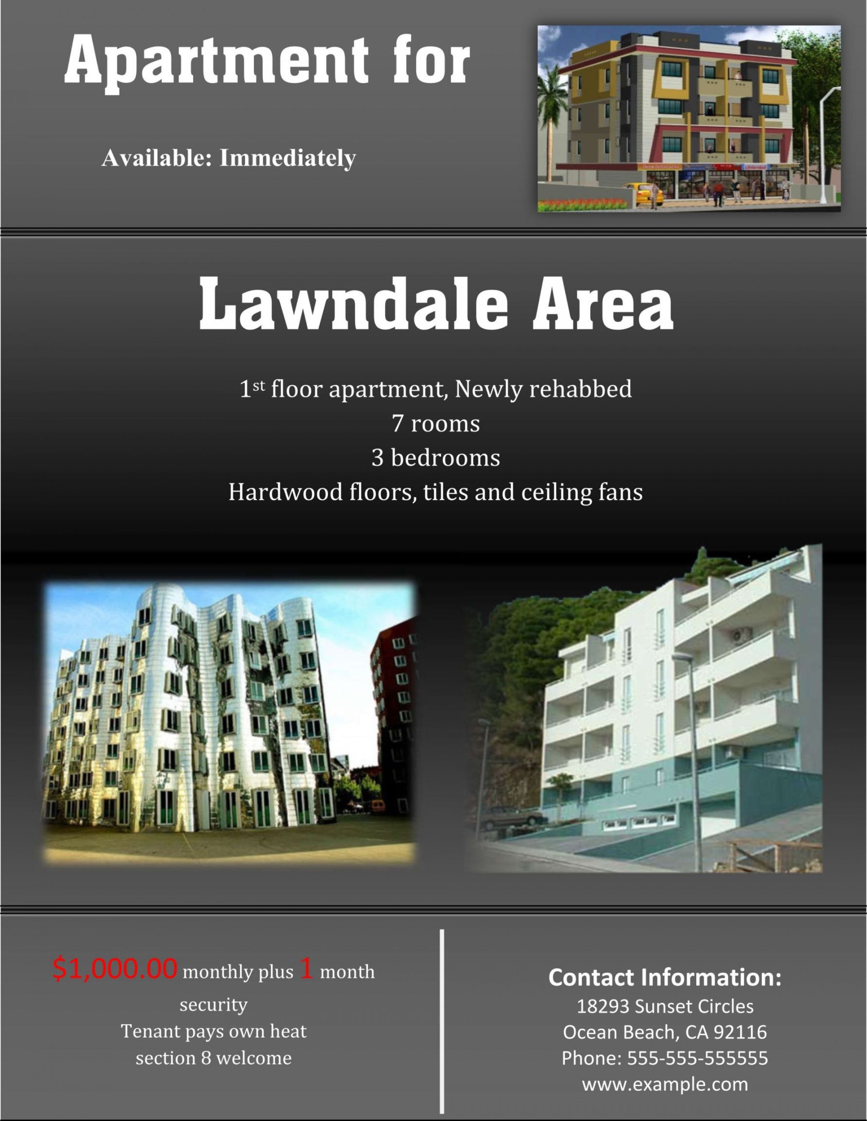 Apartment rental flyer template, Flyers are informational newspapers about a particular company or a event that is being coordinated by some company. Flyer printing is a process of informing the general public about any fresh offers of sales or discounts as being supplied by a business or business. These informative article are good source of informing masses of local marketplace about the new developments taking place in different areas, like every new solution, new event etc.. Flyers have evolved as one of an effective manner of direct communication with the customer.
