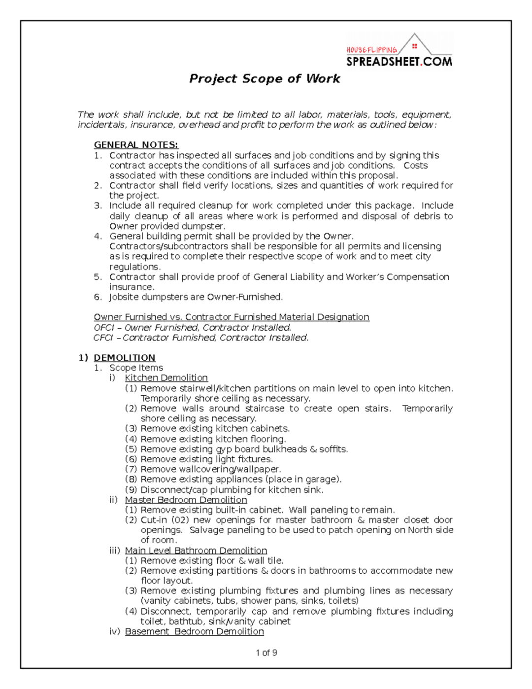 free home renovation scope of work template  prntblconcejomunicipaldechinugovco bathroom remodel scope of work template pdf