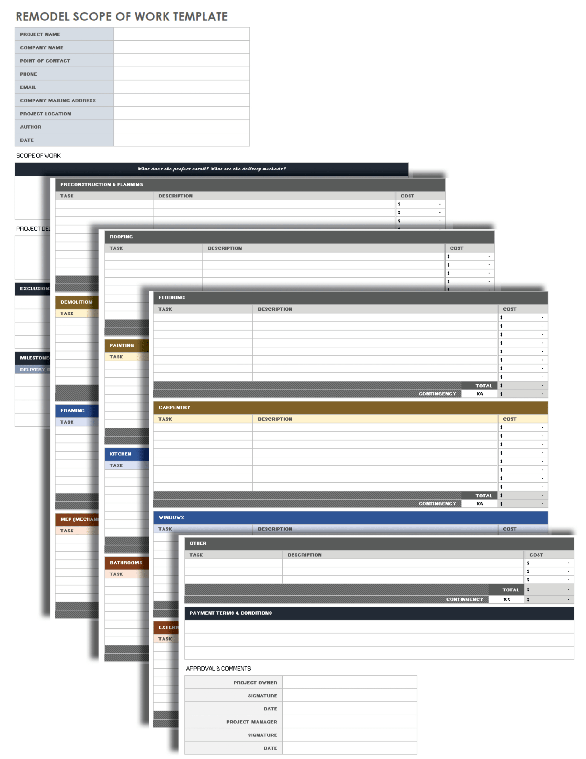 free free scope of work templates  smartsheet bathroom remodel scope of work template and sample
