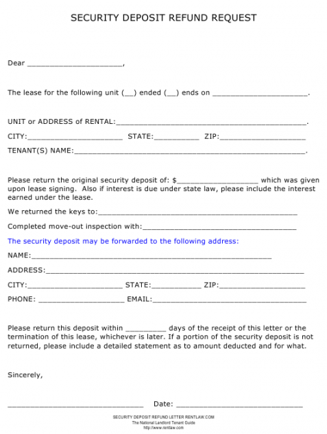 security deposit refund request form download printable biggerpockets security deposit template pdf