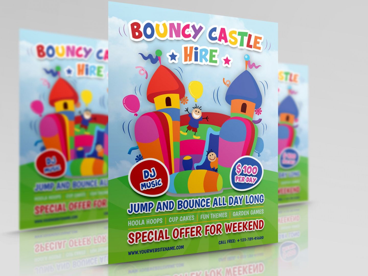 Bounce house flyer template, Flyers are a medium that helps to pass an email or service of a business with wonderful impact. Flyers are a good way to fly your projects successfully. It’s vital to ensure effective product description to create flyers strong in order to make an effect in the reader’s mind and stand out in the contest. Use of colors, shiny paper, and durability of document, resolution of images, ad copy, contact details and a lot more essentials are important to generate a successful effect.