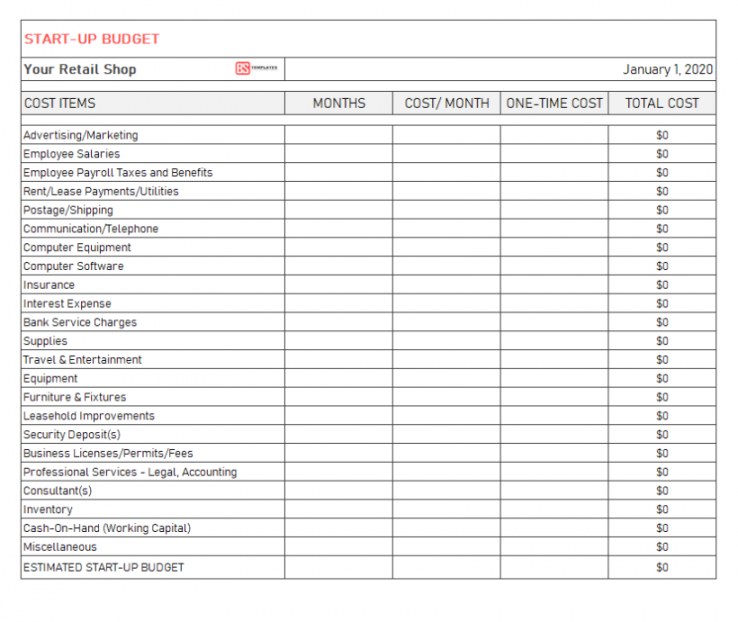 The very first step to establishing any funding would be to start a spreadsheet. Even though you could use a simple Excel spreadsheet, it’s better to use a good accountancy program application like Intuit’s Quicken or QuickBooks Guru Financial Software though you may also use any of these free Microsoft budget templates offered like the Start-up Expenses Worksheet or Marketing Budget Plan templates.