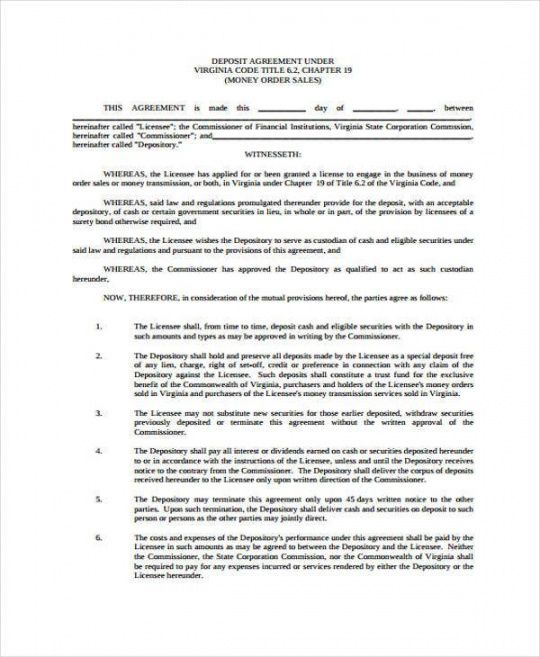 sample 11 deposit agreement templates  pdf word  free business purchase deposit agreement template word