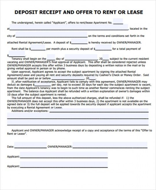 sample exclusive end of lease deposit receipt template glamorous business purchase deposit agreement template