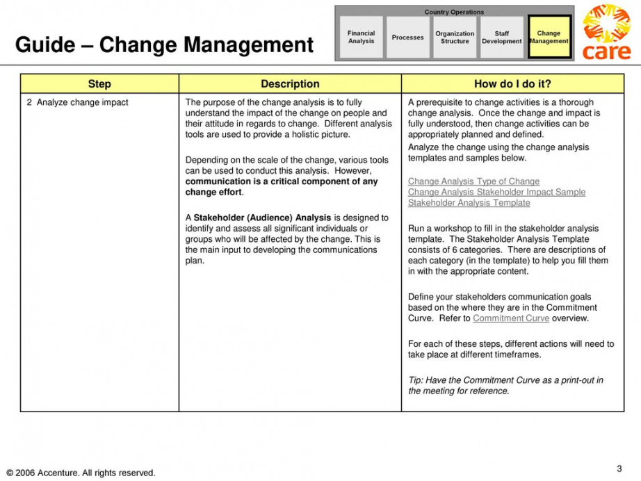 Change management stakeholder analysis template, Today, businesses require effective business analysis so as to maintain competitiveness in a highly competitive business world. Effective business analysis entails taking information accumulated from many different sources and assessing for the purpose of forecasting future trends, discovering ways to produce improvements in business plans, improving businesses operations, and making smart business decisions to improve the company’s bottom line. Understanding key marketing areas is vital to helping a business create revenue and cut back on excess waste.