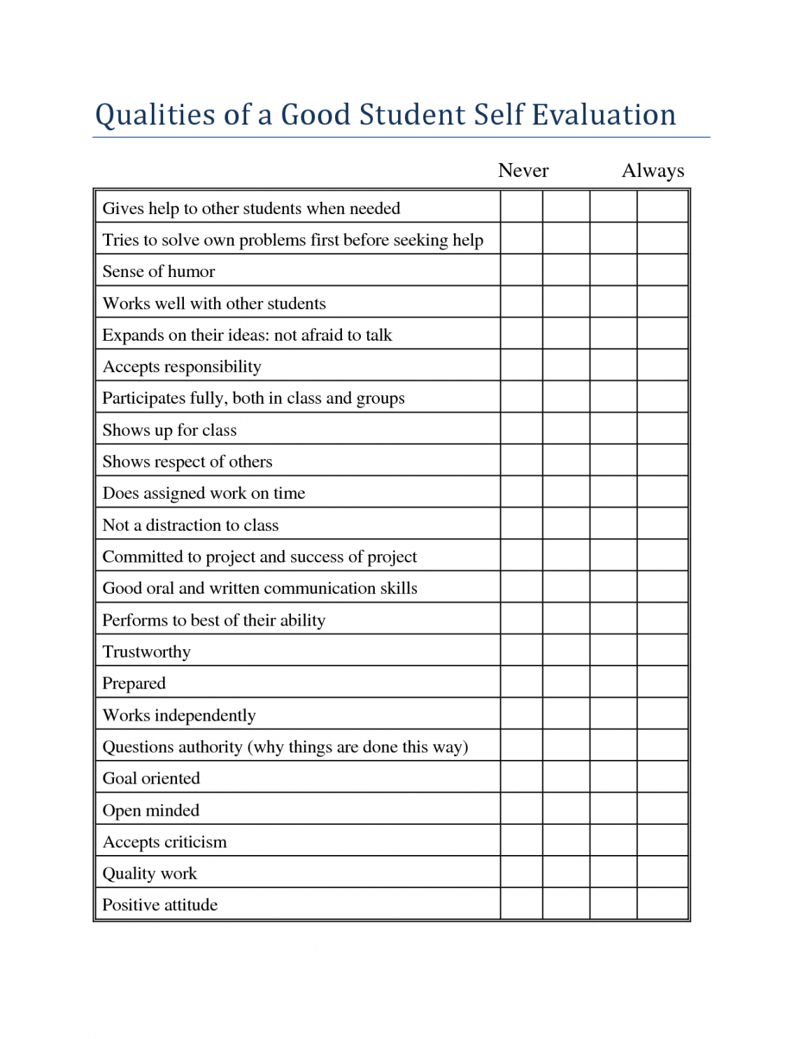 editable student self assessment rubric template  invitation templates checklist rubric template excel