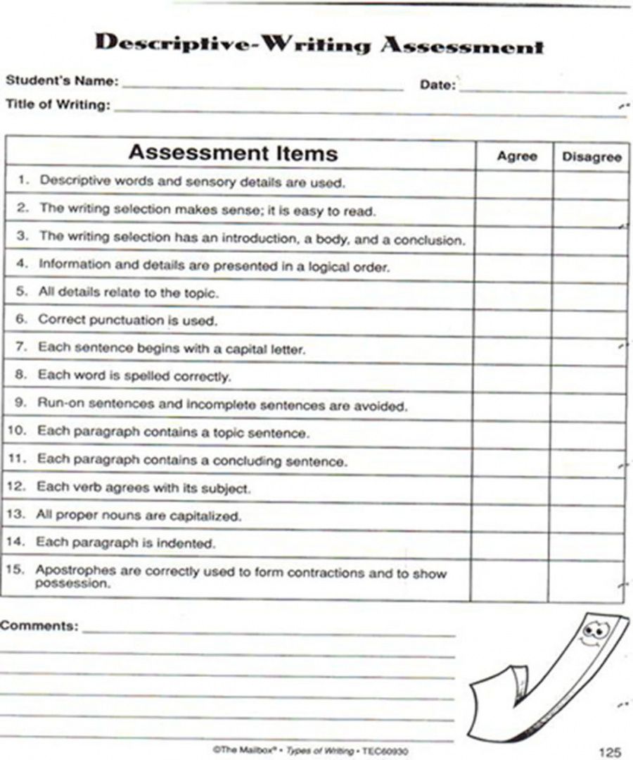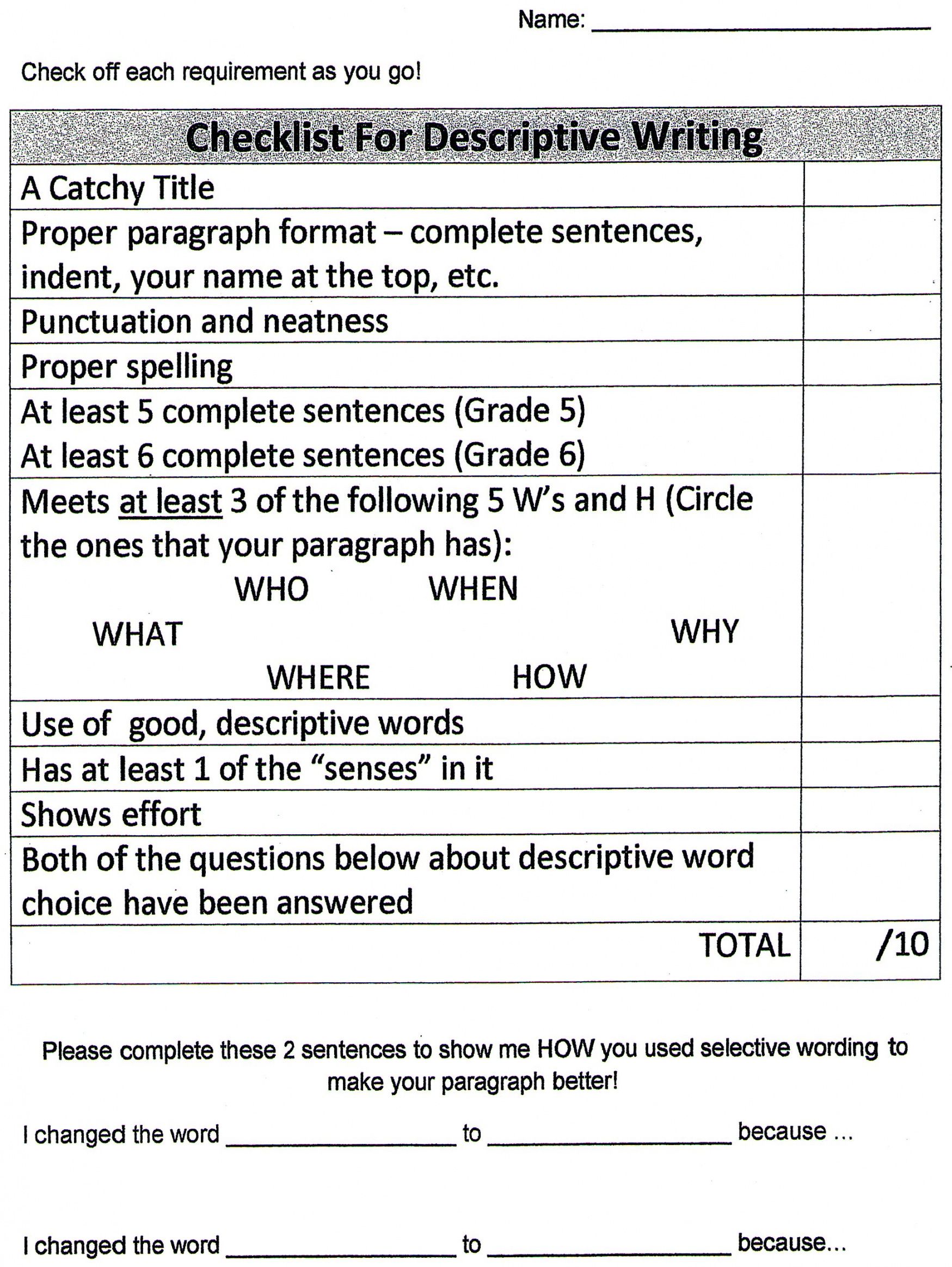 printable narrative ng checklist descriptive rubric paragraph rubrics template checklist rubric template doc