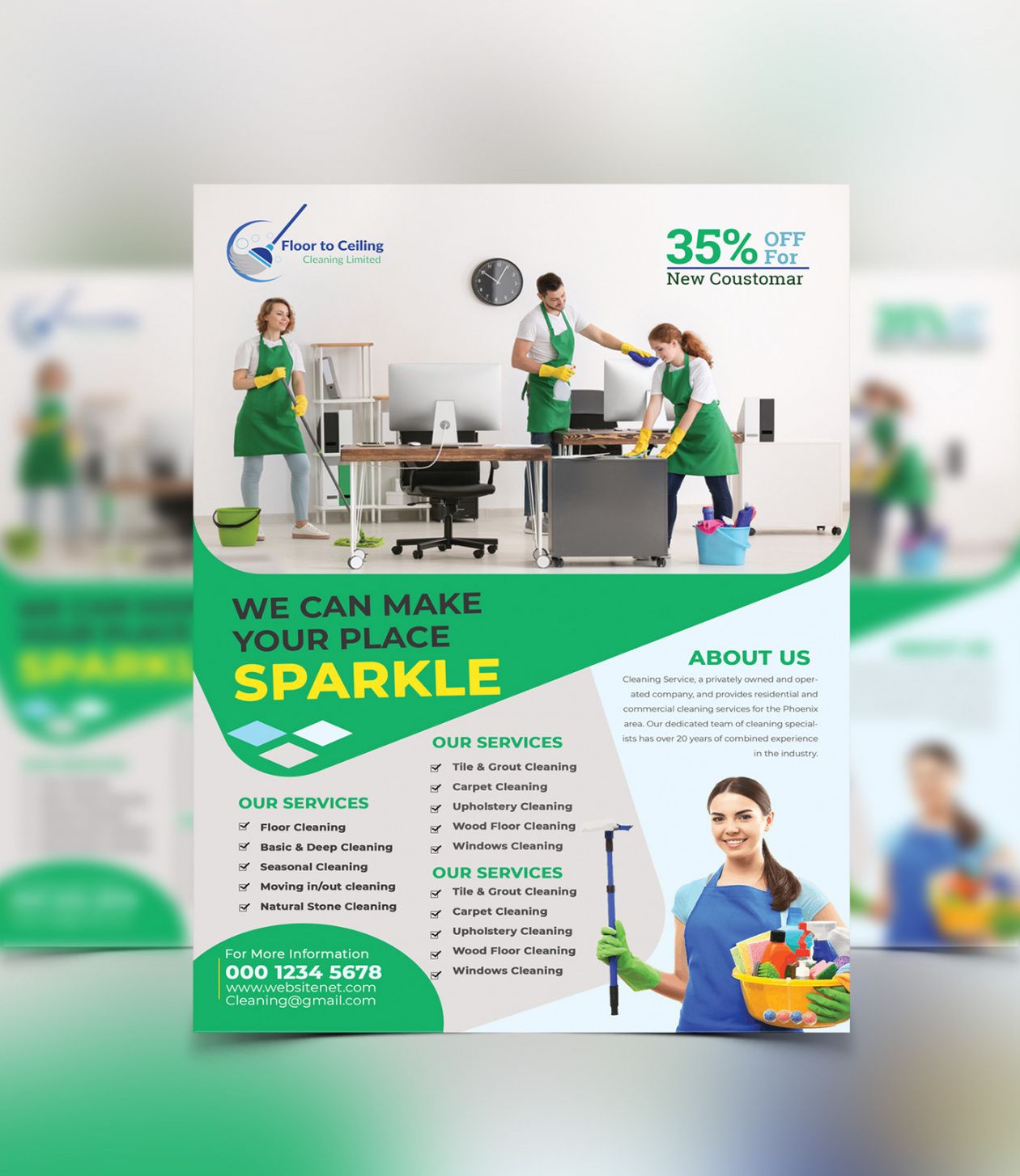 Cleaning company flyer template, Flyers are all informational newspapers about a particular company or a event that is being coordinated by some company. Flyer printing is a technique of informing the public about any fresh offers of discounts or sales as being supplied by a business or business. These informative flyers are great source of informing masses of neighborhood market about the new developments happening in various locations, like every new item, new event etc.. Flyers have evolved among an effective mode of immediate communication with the consumer.
