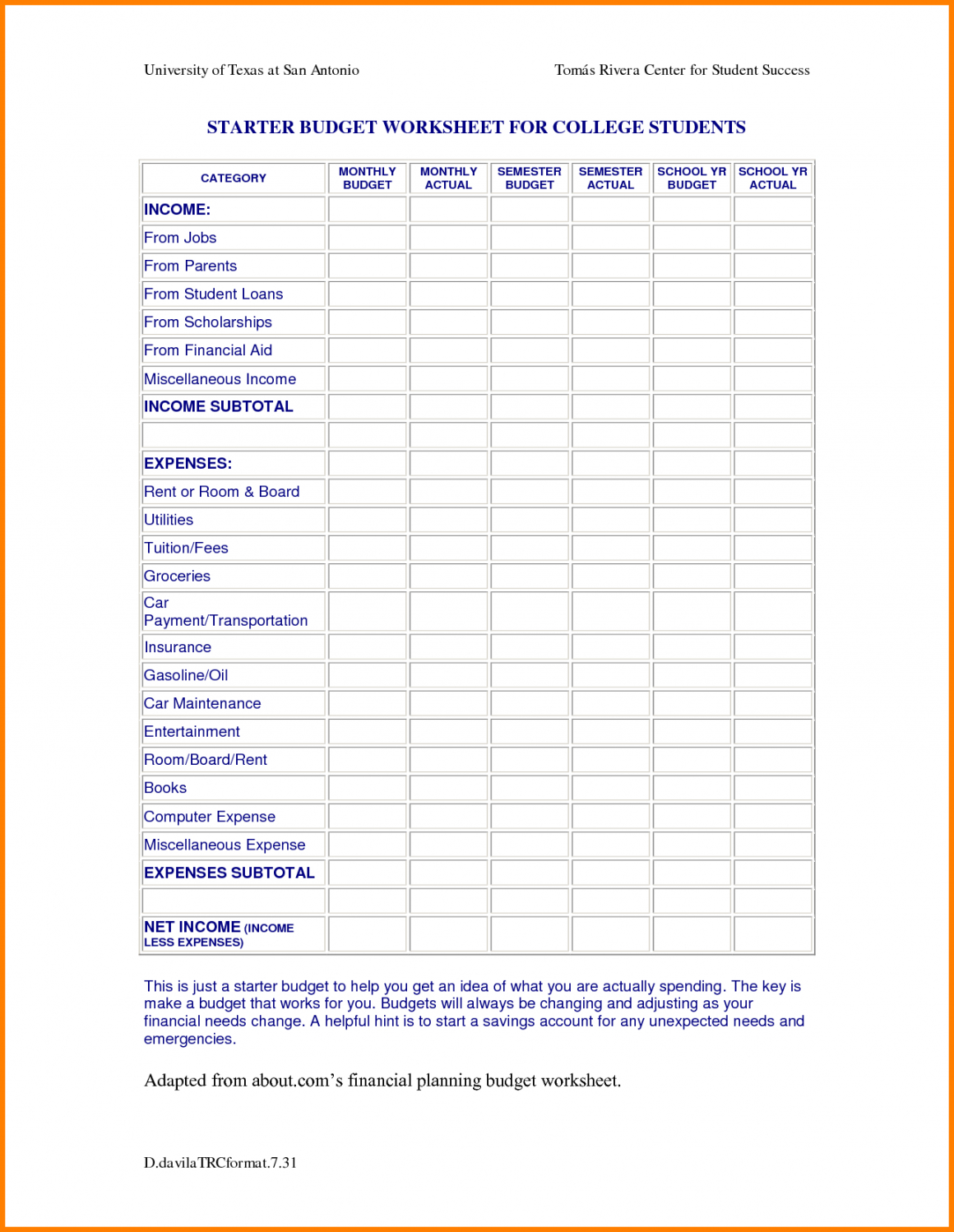 College student parents budget template, Too many tiny businesses run without budgets. And many smallish businesses which do have budgets aren’t getting as much from these as they could. We’ve seen it time and again. It isn’t because the mechanisms are tough to manage. Everyone knows the fundamentals of how budgets function: you track money coming from, you monitor out money, and you do your very best to plan for the future. In fact, the very simplicity of that formula is what leads some small-business owners to think about budgets perhaps not worth the trouble.