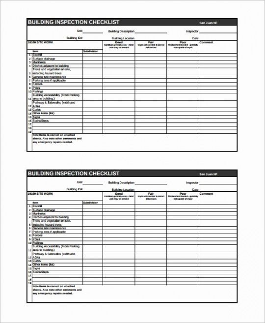 Commercial property inspection checklist template, For most of us life is a continuous struggle to stay organized, we compose lists of those things we need to and once we will need to have them done. But once the tasks we must get done get a little more complex a fantastic checklist may come in handy to make sure that everything gets done properly. With a template for a checklist you may create detailed lists which include groupings of specific tasks and checklists to be sure that you get each task done in the proper order and lessen the possibility of mistakes being made.