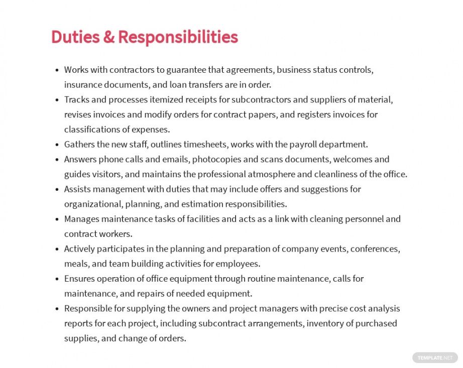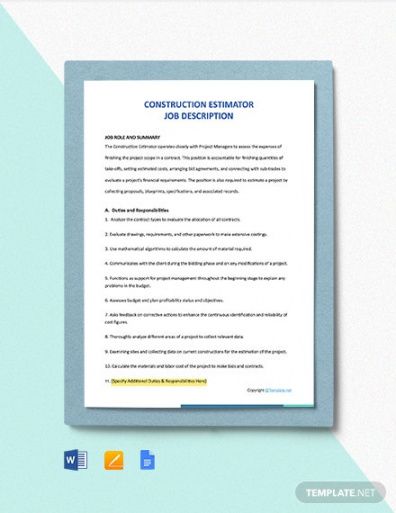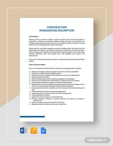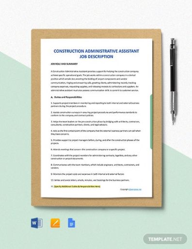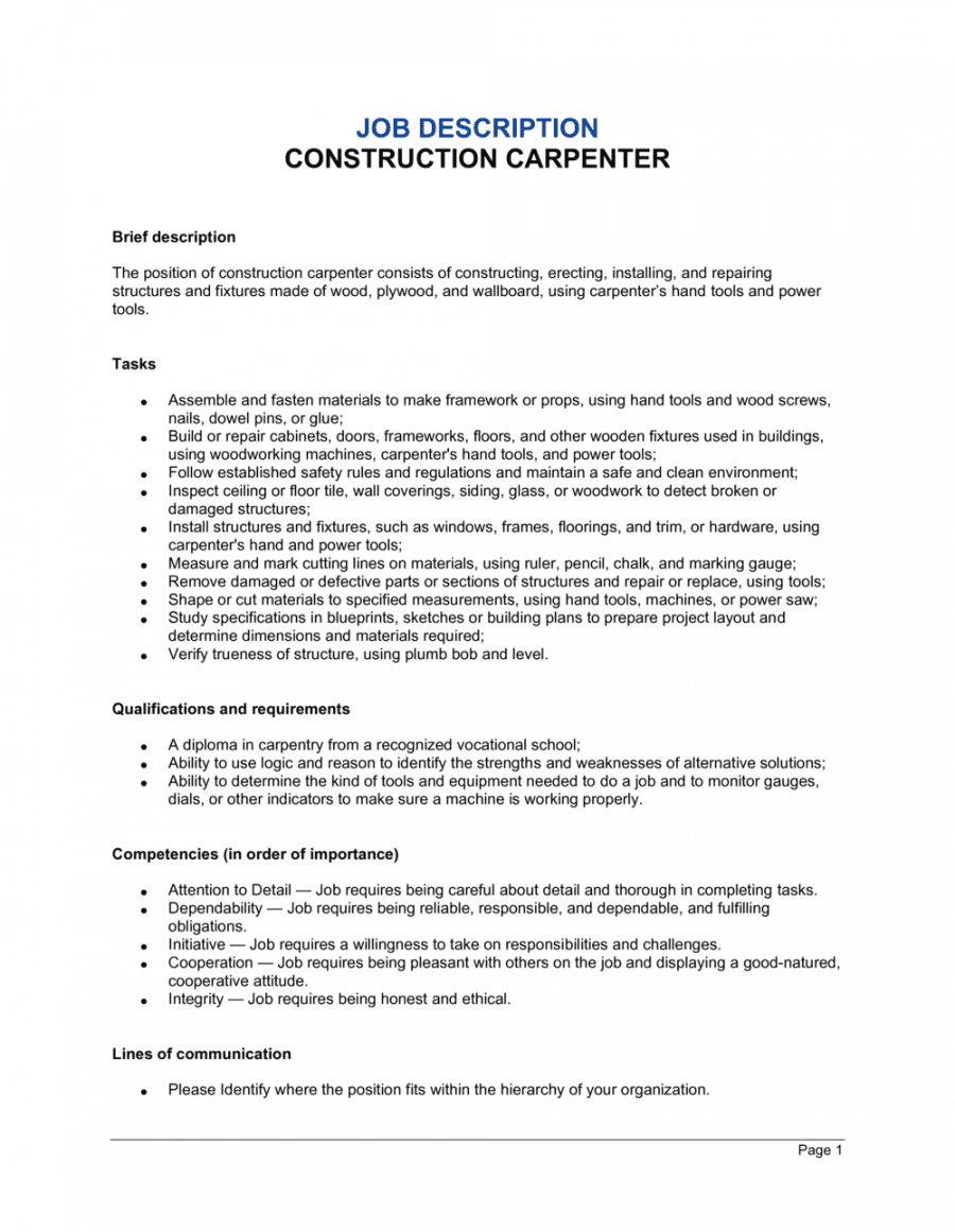 Construction job description template, Job description is an essential part of every task in each organized working environment. Writing and compiling job descriptions is one other essential job of an Human Resources individual in a business. It is extremely important since it covers details of their daily responsibilities expected from each worker in all departments of a certain firm. While writing job descriptions for every position, it must cover these areas as skills, tasks, purposes and overall duties to be carried out by employees of that department.