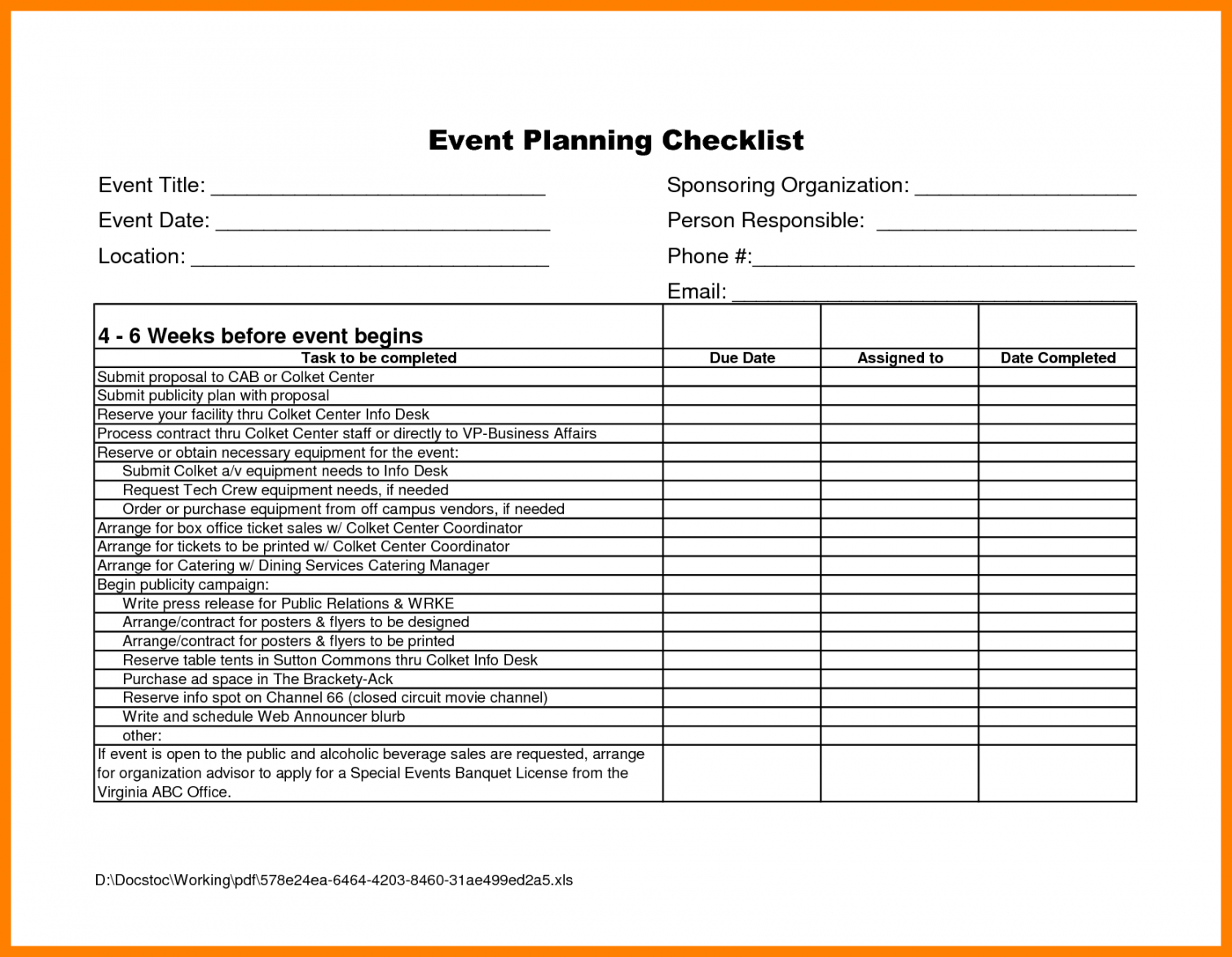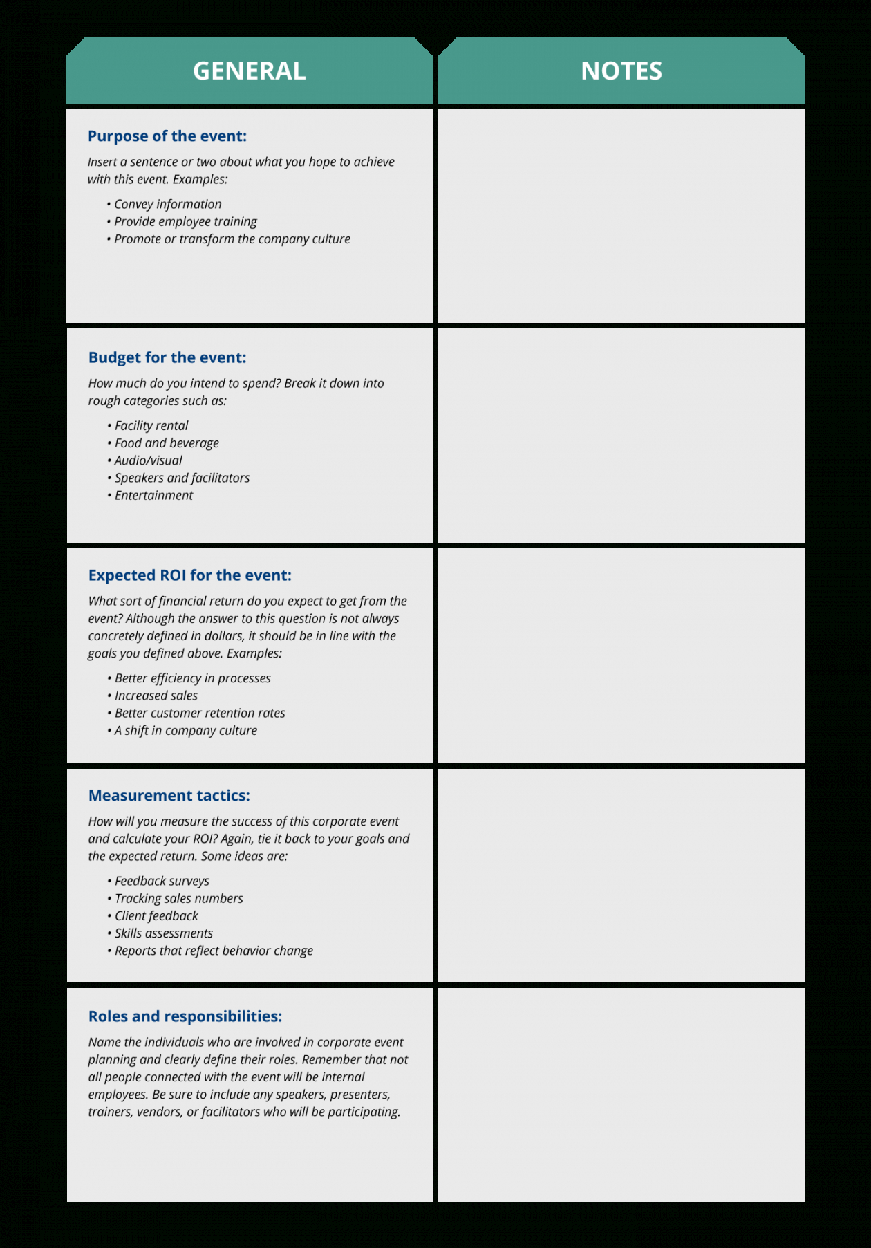 Corporate event checklist template, Historically, checklists were straightforward to-do lists which served as reminders; attend the revenue conference, fax or email the contract to an individual customer, or distribute an employee memo. Even today, most dictionaries define a checklist as a record that acts as a reminder to get a series of tasks to be completed. However, checklists have now evolved into important business management tools which do far more. Along with record action items, checklists are effective business processes that enable organizations to raise and progress methodically, and in a planned way. They have become important organizational tools for business ventures.