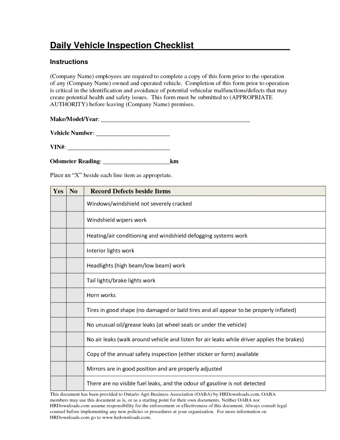 Daily vehicle maintenance checklist template, For most of us life is a continuous battle to remain organized, we write lists of those things we will need to and when we will need to get them done. But once the tasks we have to get done get a bit more complicated a fantastic checklist might come in handy to ensure everything gets done correctly. Using a template to get a checklist you can create detailed lists that have groupings of particular tasks and checklists to be sure you receive every job done in the proper order and reduce the risk of mistakes being made.
