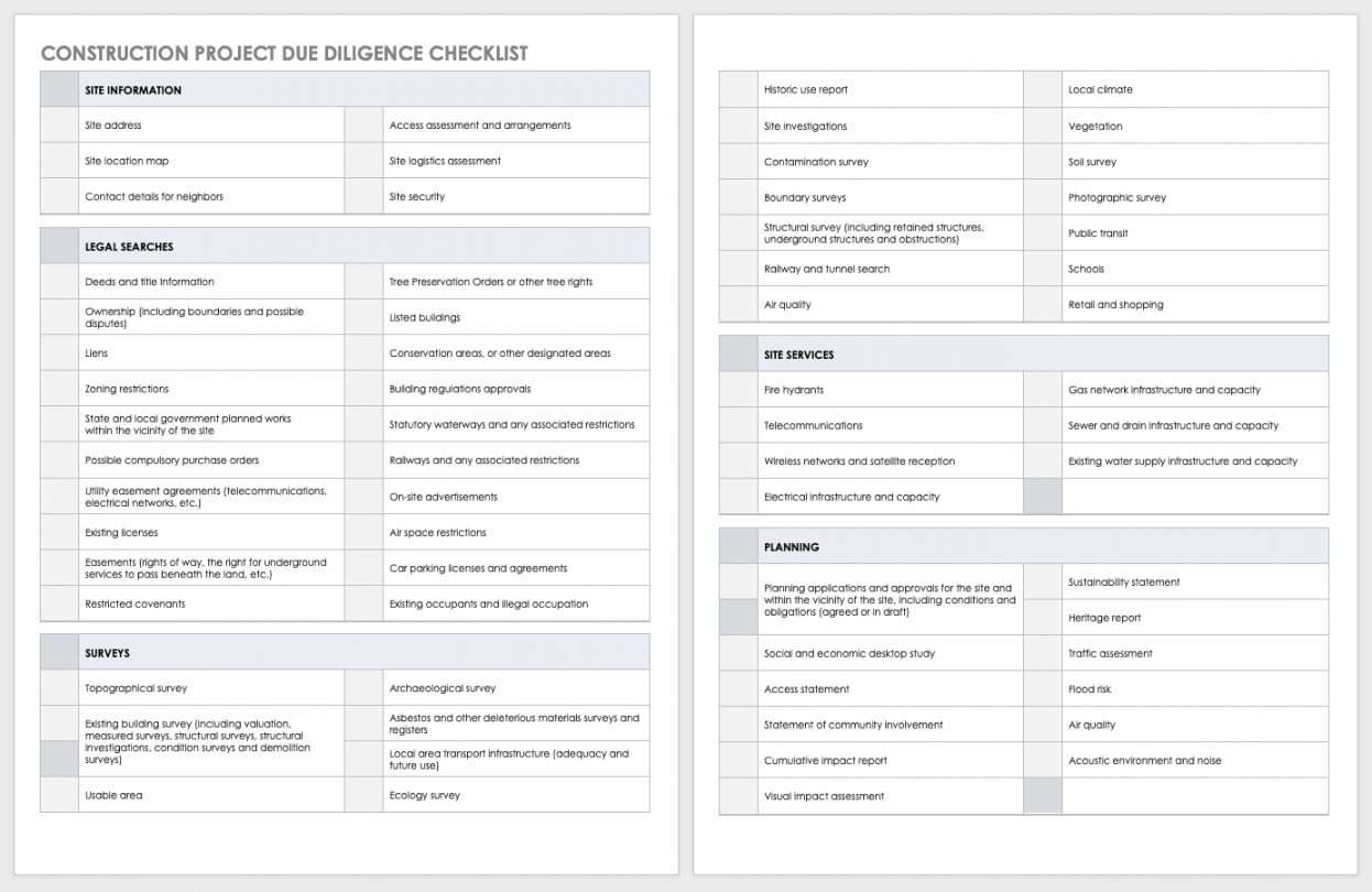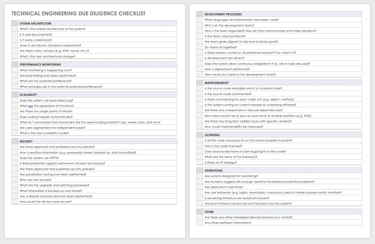 Due diligence checklist template, Historically, checklists were simple to-do lists that functioned as reminders; attend the revenue seminar, fax or email the contract to an individual customer, or distribute an employee memo. Even today, most dictionaries define a checklist for a record that serves as a reminder to get a series of tasks to be completed. However, checklists have evolved to important business management tools which do much more. Along with listing action items, checklists are powerful business processes that enable organizations to grow and progress systematically, and in a planned way. They have become important organizational tools for business enterprises.