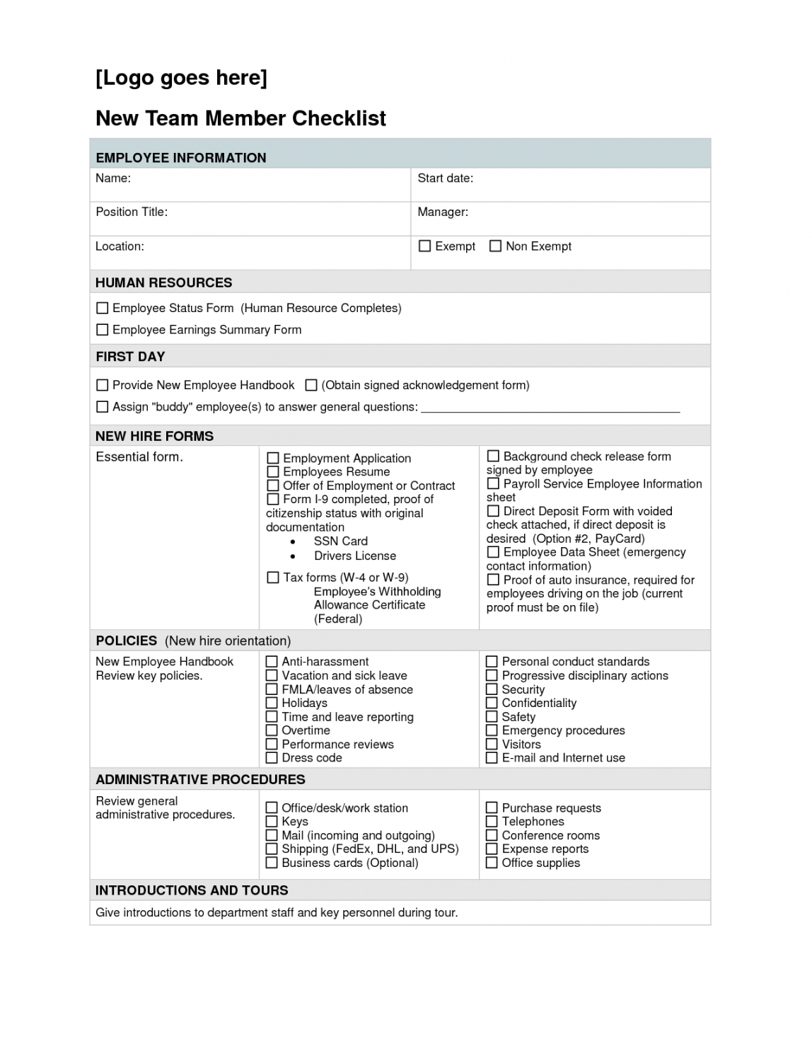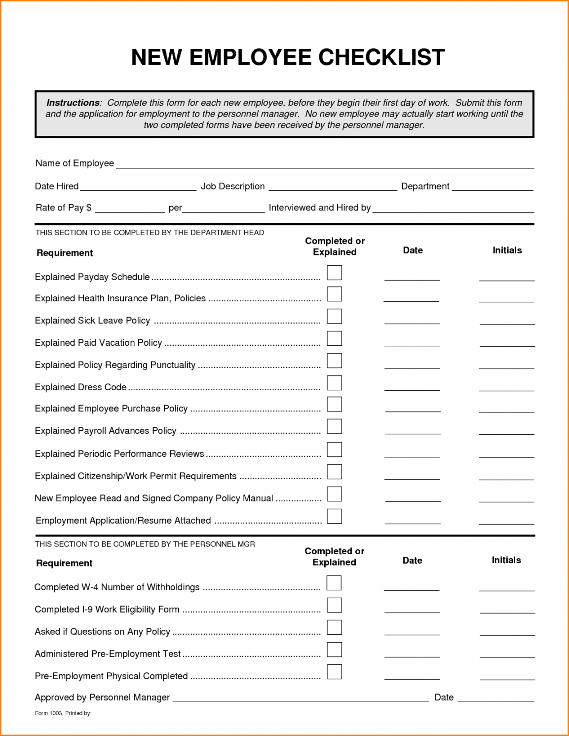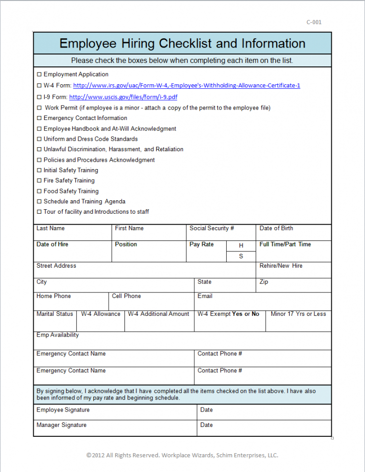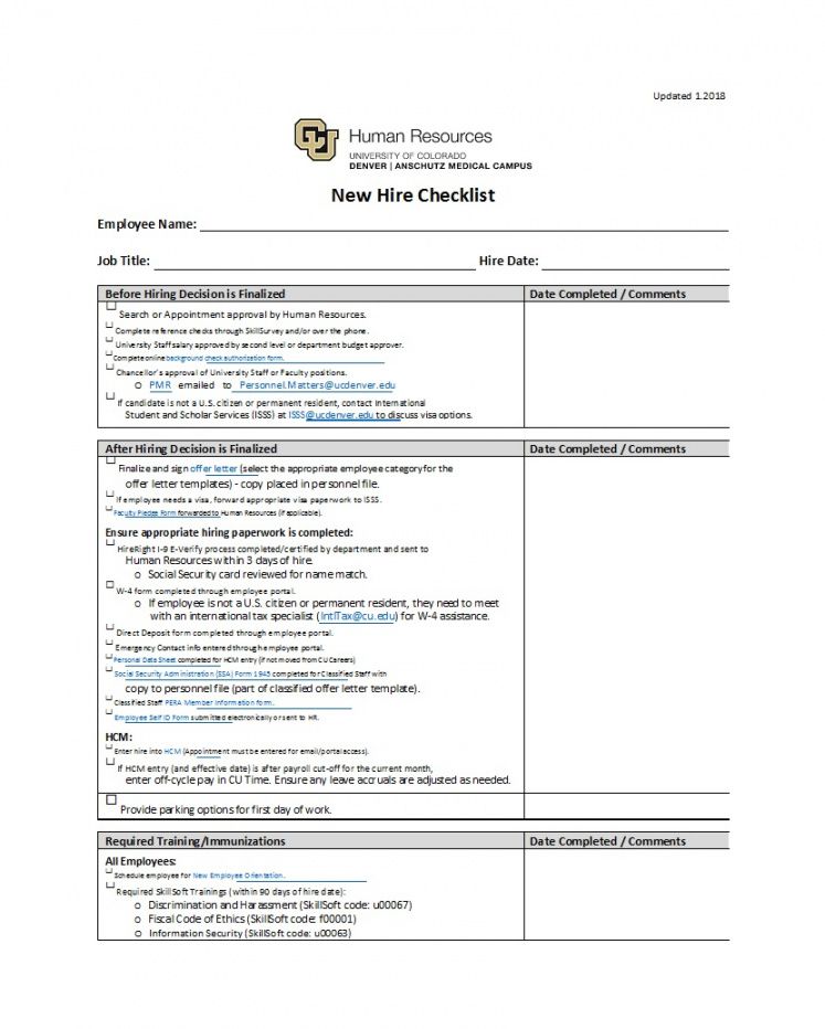 Employee new hire checklist template, For most of us life is a constant battle to stay organized, we compose lists of those things we will need to and when we need to have them done. But once the tasks we have to get done get a little more complex a good checklist may come in handy to make sure everything gets done correctly. With a template for a checklist you can create detailed lists that include groupings of particular activities and checklists to be certain that you get each job done in the appropriate order and reduce the possibility of errors being made.