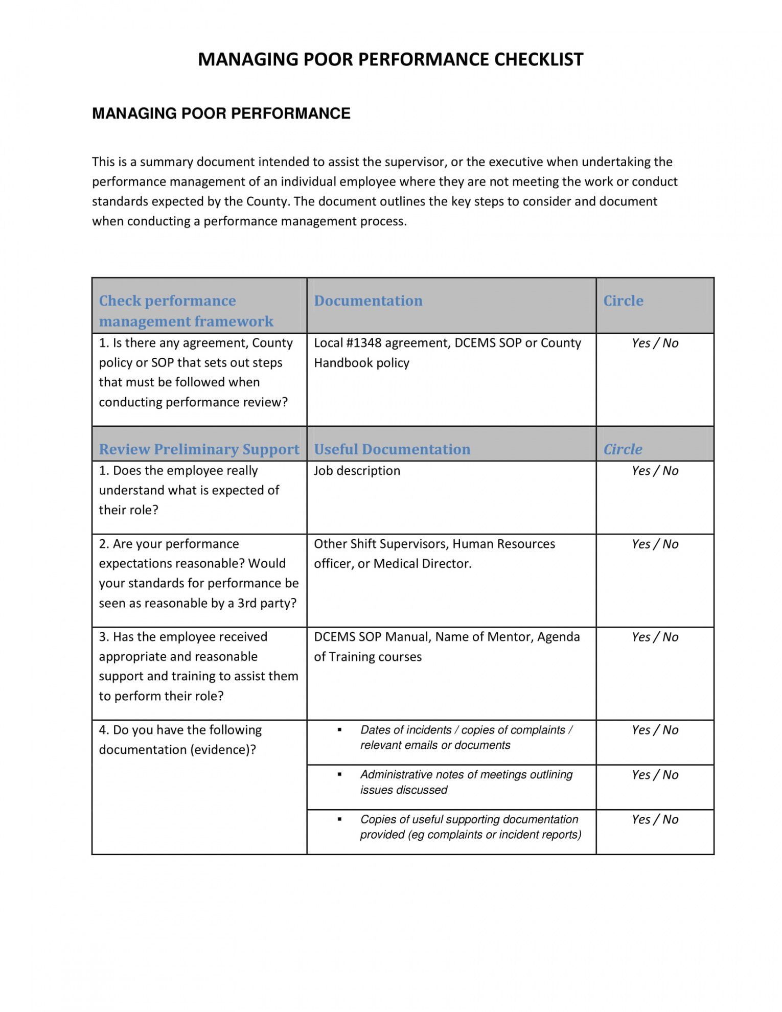 Employee performance checklist template, For most of us life is a constant battle to remain organized, we write lists of those things we need to and when we need to have them done. However, when the tasks we have to get done get a bit more complicated a fantastic checklist may come in handy to make sure everything gets done properly. Using a template to get a checklist you can create comprehensive lists which include groupings of particular tasks and checklists to make certain that you receive each task done in the appropriate order and reduce the risk of mistakes being made.