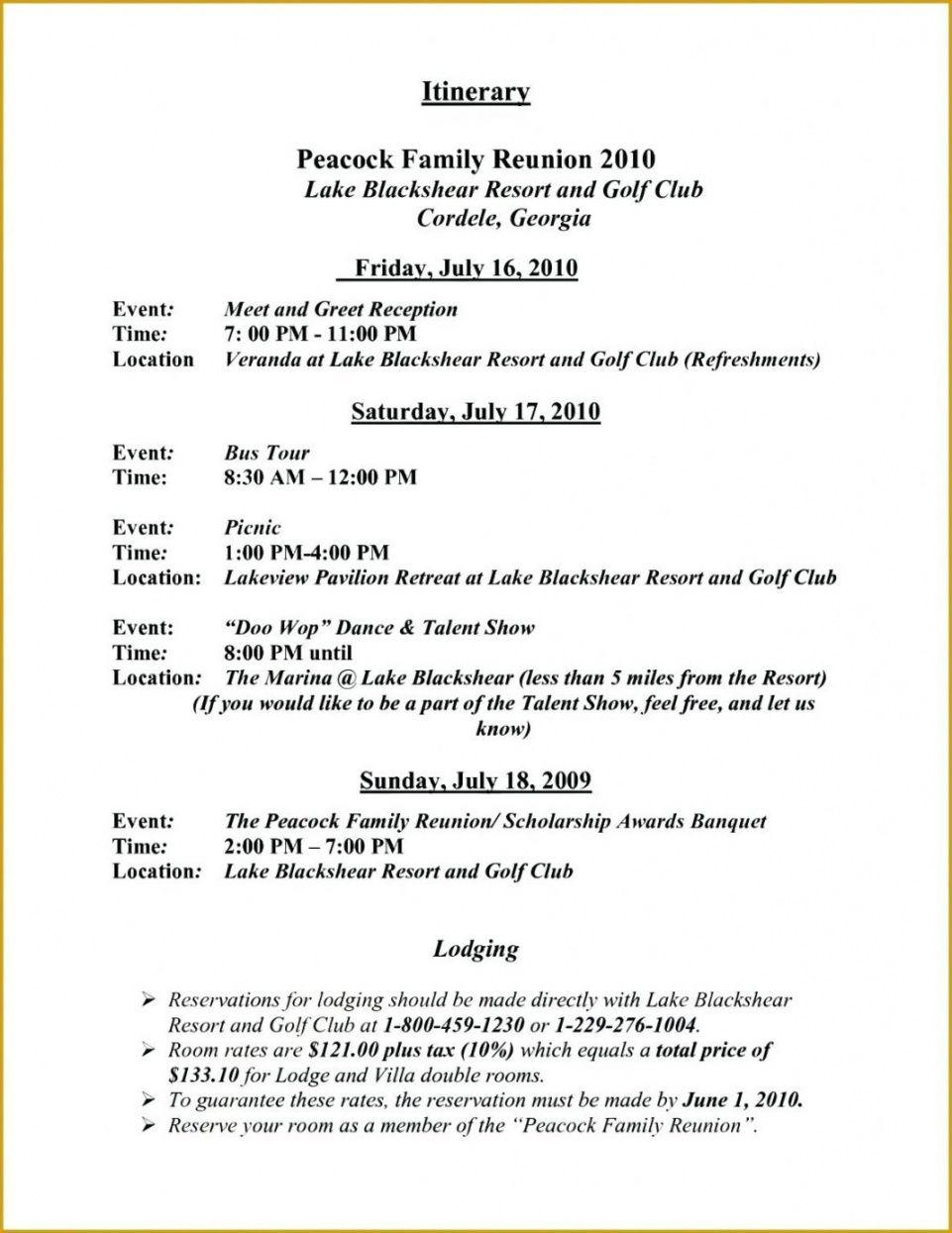 Images of Family Reunion Itinerary Template