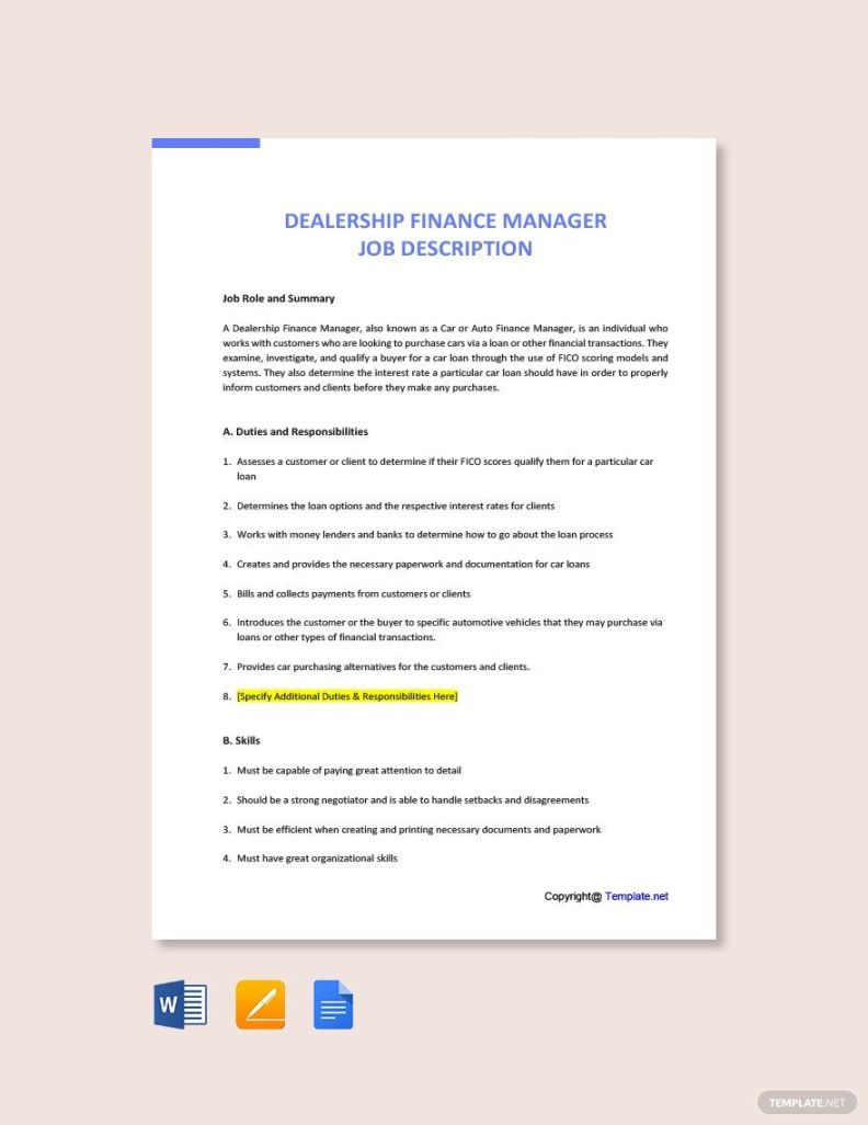Editable Finance Director Job Description Template Doc Sample