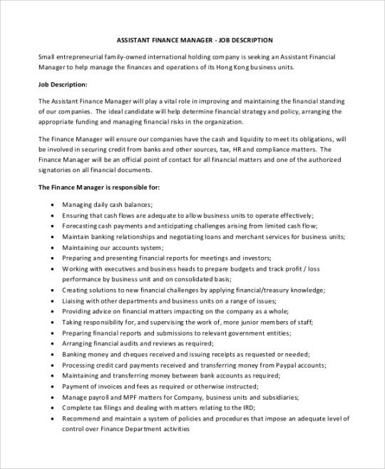 Finance Director Job Description Template Excel Sample