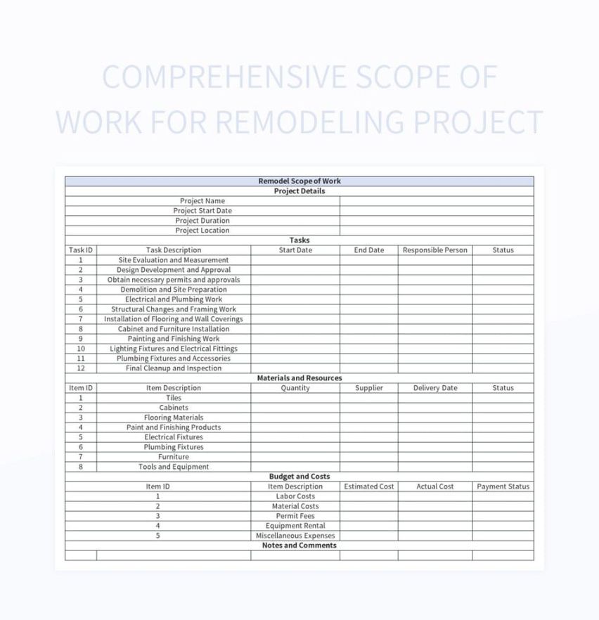 A good scope of work should include several key components. These typically include a project description, defining the project’s aim and targets; a comprehensive list of outputs, outlining what the project will produce; a structured schedule with key dates and time markers; a division of tasks and duties, highlighting who is in charge for each task; and a financial estimate outlining the project’s expenditures. It is a wise step to get it approved by everyone involved.