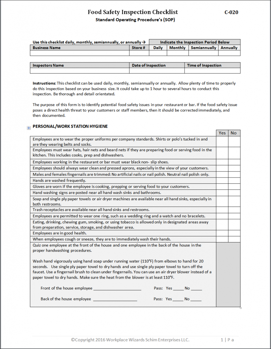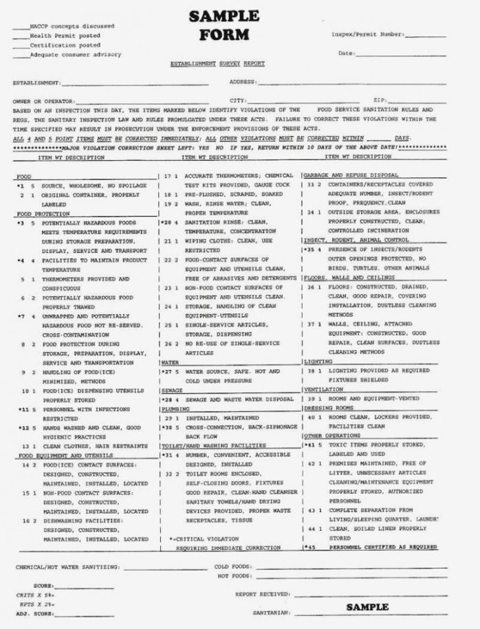 Food safety inspection checklist template, For a lot of men and women, as they get older, their needs vary radically. Based on a individual’s age, health and psychological capacity, there might be several things that a grownup just can’t keep up with the way that they used to, or several things a Boomer does not have (can you say”Advanced Directives”) and doesn’t understand they need until it is too late. We believe that among the most effective ways to get boomers ready for their futures, and to keep seniors arranged in the present, is by equipping them with checklists that cover key regions of their life. We think that while checklists may not have the moment particulars laid out (checklists are supposed to deliver succinct advice), they’re a great planning tool that give people a macro-view of what needs to be learned, gathered, prepared, and finally executed, particularly when preparing for the unexpected moment; moments where with no strategy set up becomes a crisis scenario.