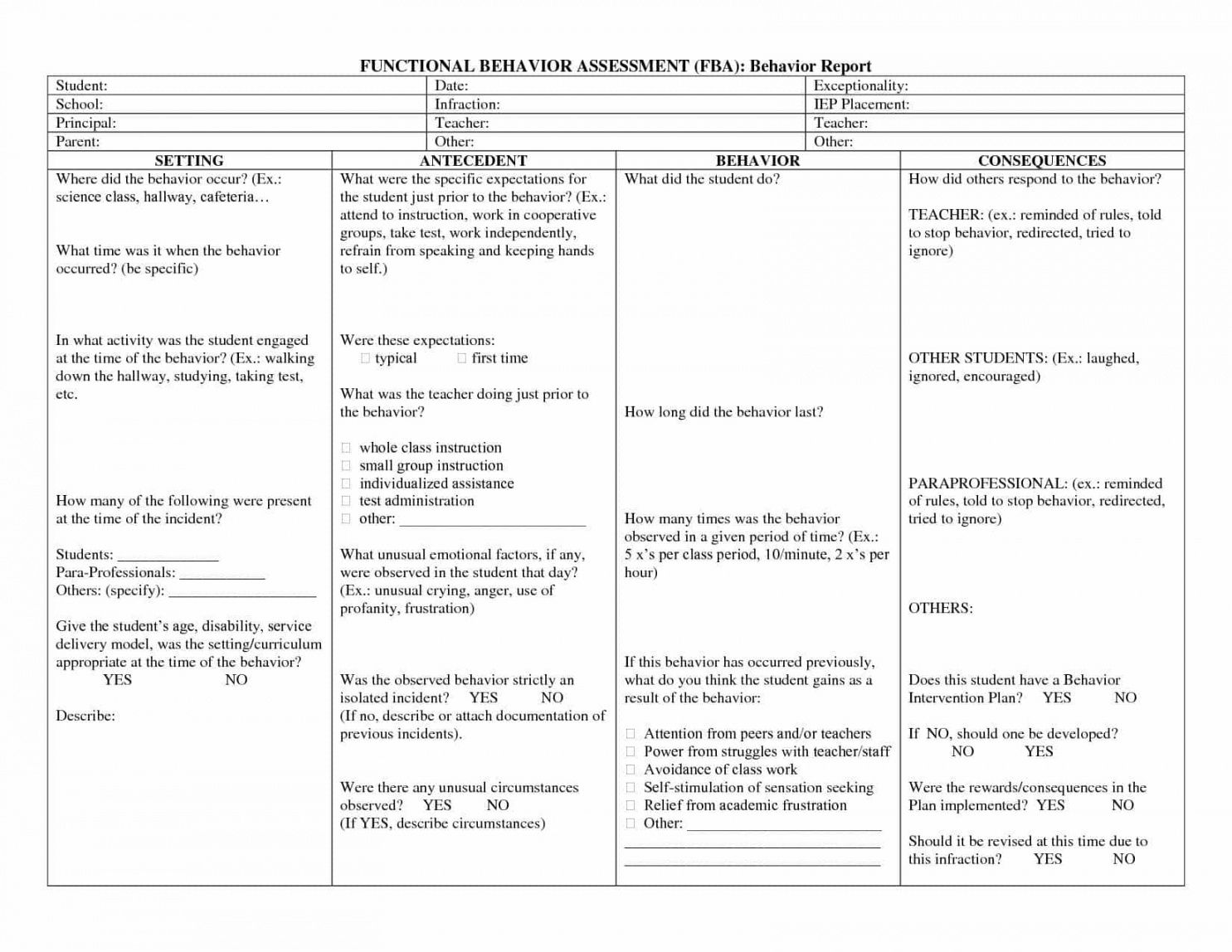 Functional behavior assessment checklist template, For a lot of people, as they get older, their needs change radically. Based on a person’s age, health and psychological capacity, there may be several things that a grownup just can’t keep up with exactly the way that they used to, or many things a Boomer does not have (can you say”Advanced Directives”) and doesn’t know they need until it’s too late. We think that one of the most effective methods of getting boomers prepared for their futures, and to keep seniors organized in the current, is by equipping them with checklists that cover key areas of their life. We believe that while checklists may not have the moment particulars laid out (checklists are meant to deliver concise advice), they are a great preparation tool that provide folks a macro-view of what needs to be learned, gathered, ready, and finally implemented, particularly when preparing for the unexpected moment; seconds where with no plan in place becomes a crisis scenario.
