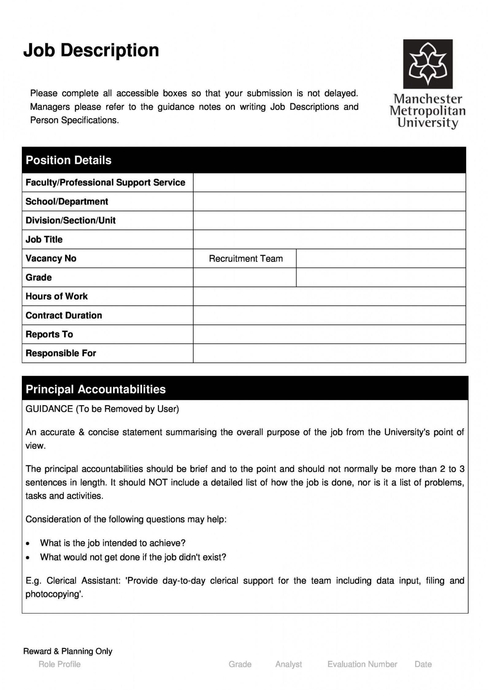 Functional job description template, Job outline is an essential part of every job in every organized working atmosphere. Writing and compiling project descriptions is one other essential job of a Human Resources person in a business. It’s quite important since it insures details of their daily duties expected from each worker in all departments of a particular firm. While writing job descriptions for every position, it must cover these areas as abilities, tasks, functions and general duties to be performed by personnel of that department.