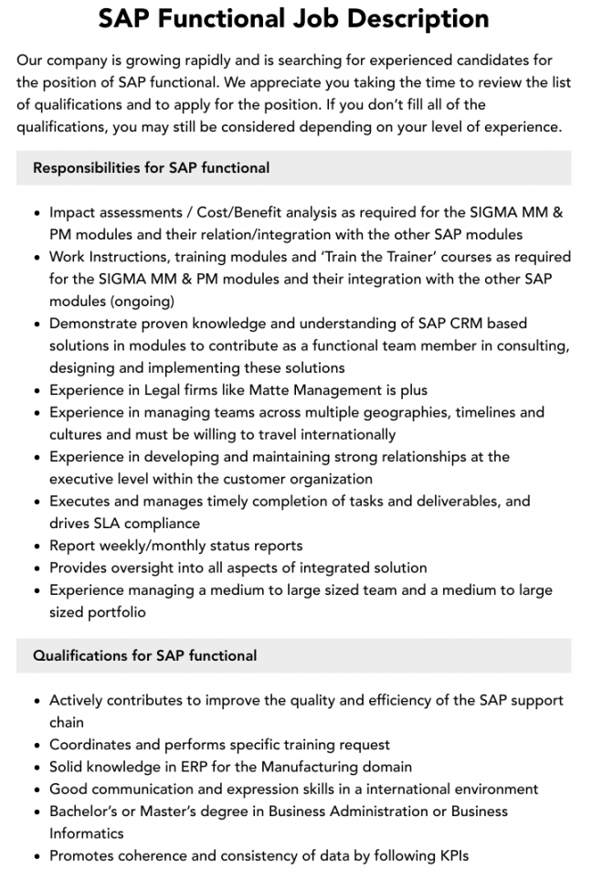 sap functional job description  velvet jobs functional job description template doc