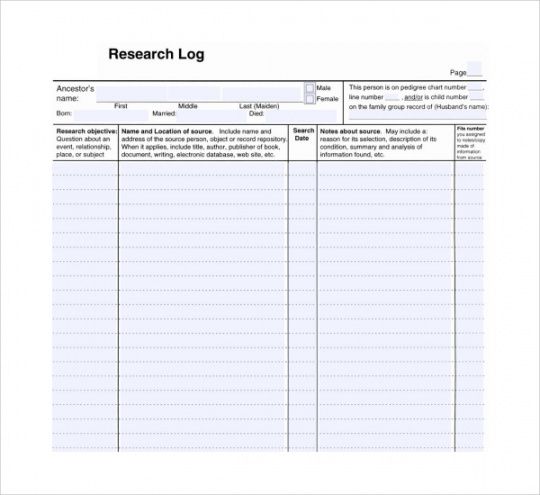 printable 9 research log templates to download  sample templates genealogy research checklist template examples