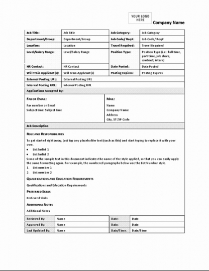 Heal it quite badly, and it will bring a lot of advantages. The hiring process will probably be easier for you and more productive for the business. Contain the important qualifications and prerequisites, for example particular qualifications or skills, as well as the skills and attributed revealed from the proficiency version. A precise description must say the title of this place, division (if any), necessary abilities, duties and the total amount of experience required.