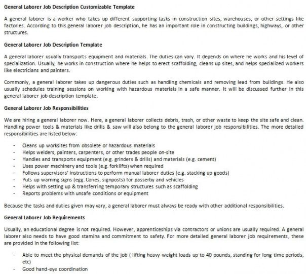 Generic job description template, Job description is a vital part of every job in every organized working atmosphere. Writing and compiling job descriptions is another very important task of a Human Resources individual within a company. It is extremely important since it covers details of the daily duties expected from each worker in all departments of a given firm. While writing job descriptions for every position, it must cover such areas as skills, tasks, functions and general responsibilities to be carried out by employees of that section.