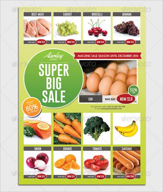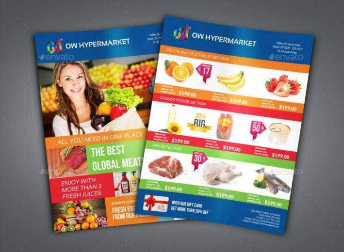 Grocery store flyer template, Flyers are all informational documents about a particular company or a event that is being coordinated by some company. Flyer printing is a method of informing the general public about any new offers of discounts or sales as being offered by a business or company. These educational flyers are good supply of informing masses of local market about the new developments happening in various places, like any new product, new event etc.. Flyers have evolved among an effective manner of direct communication with the consumer.