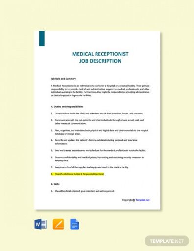 Healthcare job description template, Among the various responsibilities of a human resources specialist, hiring new capable employees is among the most important. After carefully assessing the competency design your organization wants, you’ll be able to determine the particular qualities that prospective employees must have – the skills and qualities which are most significant to a particular function or another. When you’ve carefully created your hiring criteria, the next essential step is the description.
