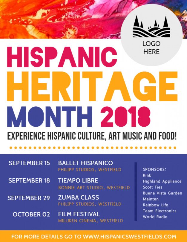 Hispanic heritage flyer template, Flyers are informational documents about a specific business or an event which is being organized by some company. Flyer printing is a way of informing the public about any fresh offers of discounts or sales as being offered by a company or business. These educational article are great source of informing masses of neighborhood market concerning the new developments taking place in various places, like every new product, new occasion etc.. Flyers have evolved as one of an effective manner of immediate communication with the consumer.