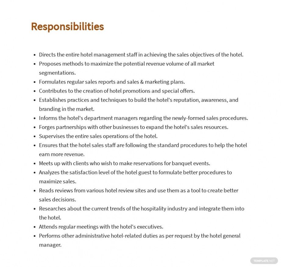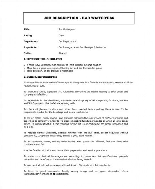 Hospitality job description template, The perfect job description can aid your recruiting process run smoothly. It can attract the type of candidates that you would like, and may also market your brandnew. The work description has three main purposes. It helps to attract candidates with the skills you require. It defines the conditions of the job function and the responsibilities the candidate will choose on. And it can be utilised as a reference source, which is very useful when it’s the right time to carry out appraisals.