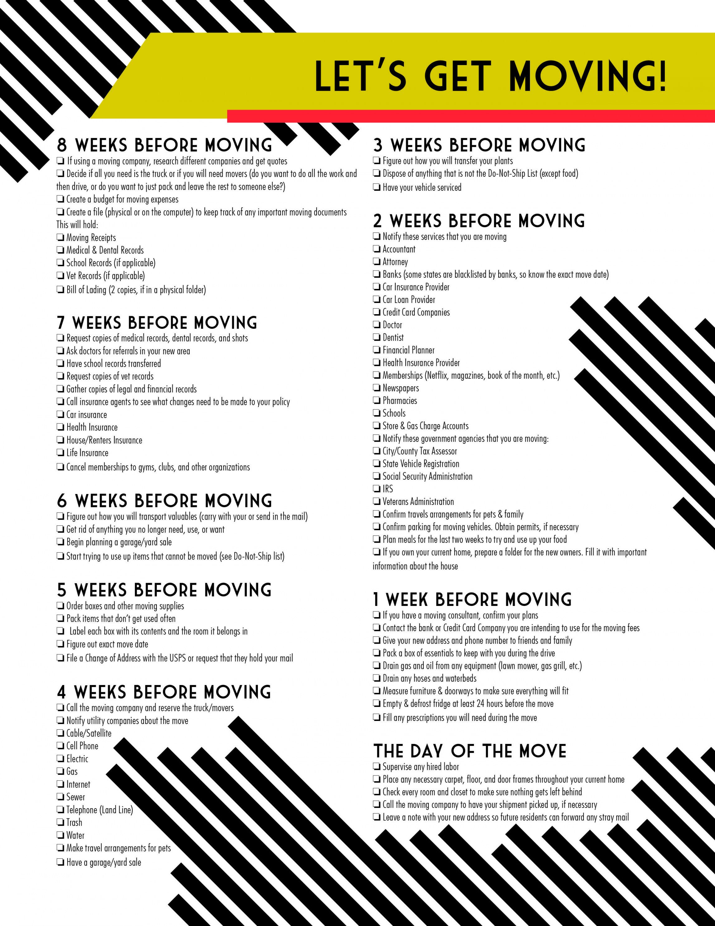 House moving checklist template, For most of us life is a constant battle to stay organized, we write lists of the things we will need to and once we will need to get them done. But when the tasks we must get done get a little more complex a fantastic checklist might come in handy to ensure that everything gets done properly. With a template to get a checklist you may create detailed lists which have groupings of specific activities and checklists to be sure you get every task done in the proper order and reduce the risk of mistakes being made.