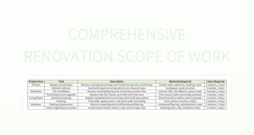 House renovation scope of work template, Have you launched a project eager to begin, only to find yourself confused by the chaos, uncertain of next steps? That’s where a detailed work scope proves essential as your project’s guiding star. Think of it as a structured plan, mapping the step-by-step process you’ll take from start to finish. It promotes shared understanding, defines roles, and reduces those confusing miscommunications that can jeopardize great ideas. Whether you’re a independent contractor starting client work, or a business managing internal initiatives, a precise project outline is your secret weapon for success.