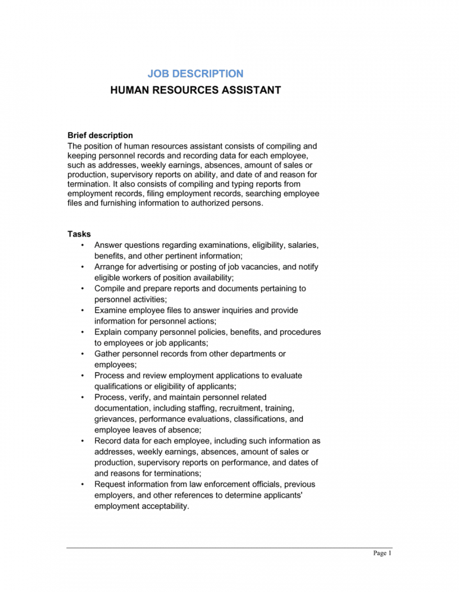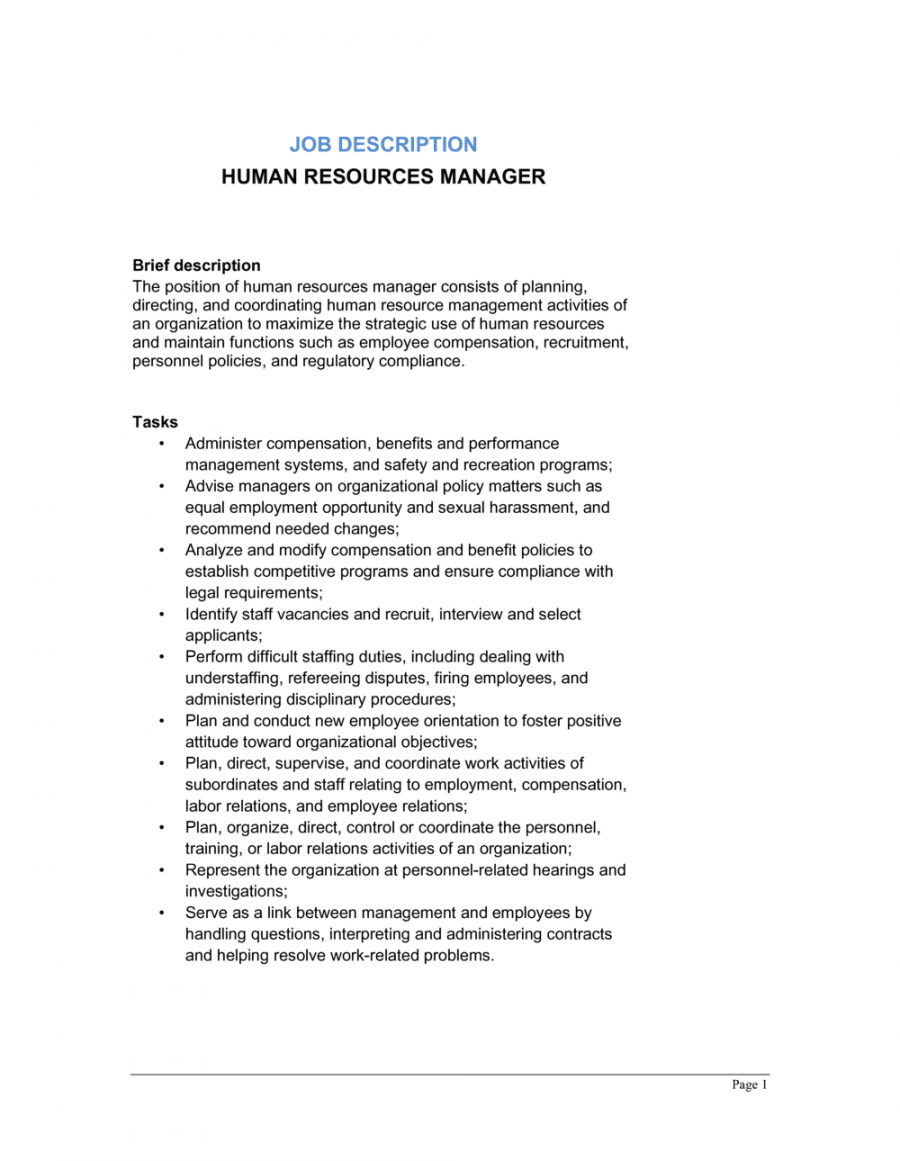 Hr job description template, One of the many duties of a human resources expert, hiring new capable workers is one of the most important. After carefully analyzing the competency design your company demands, you will have the ability to determine the specific qualities that prospective employees must possess – the abilities and qualities which are most significant to a function or the other. When you’ve carefully created your hiring criteria, the next essential step is this description.