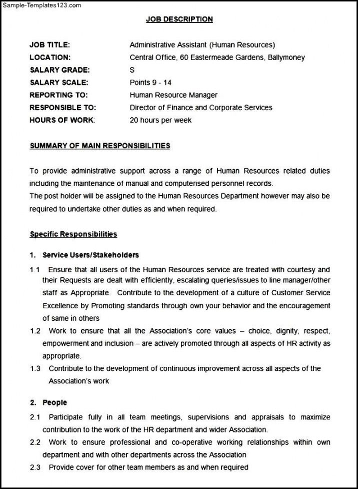 free administrative assistant job description template human resources human resources manager job description template
