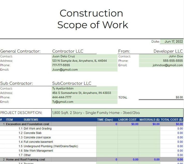 scope of work construction contract  jolyn russo independent contractor scope of work template pdf