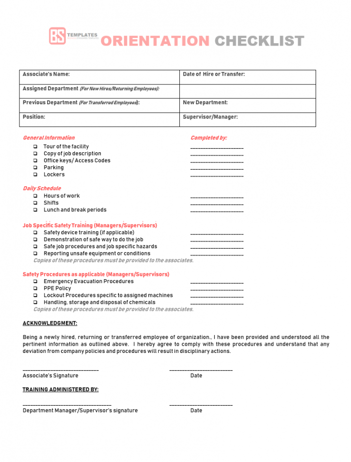 It new hire checklist template, For most of us life is a constant struggle to remain organized, we compose lists of those things we will need to and when we will need to get them done. However, when the tasks we must get done get a little more complicated a fantastic checklist might come in handy to make sure everything gets done properly. With a template for a checklist you can create detailed lists which include groupings of particular activities and checklists to make certain you get each job done in the appropriate order and lessen the risk of errors being made.