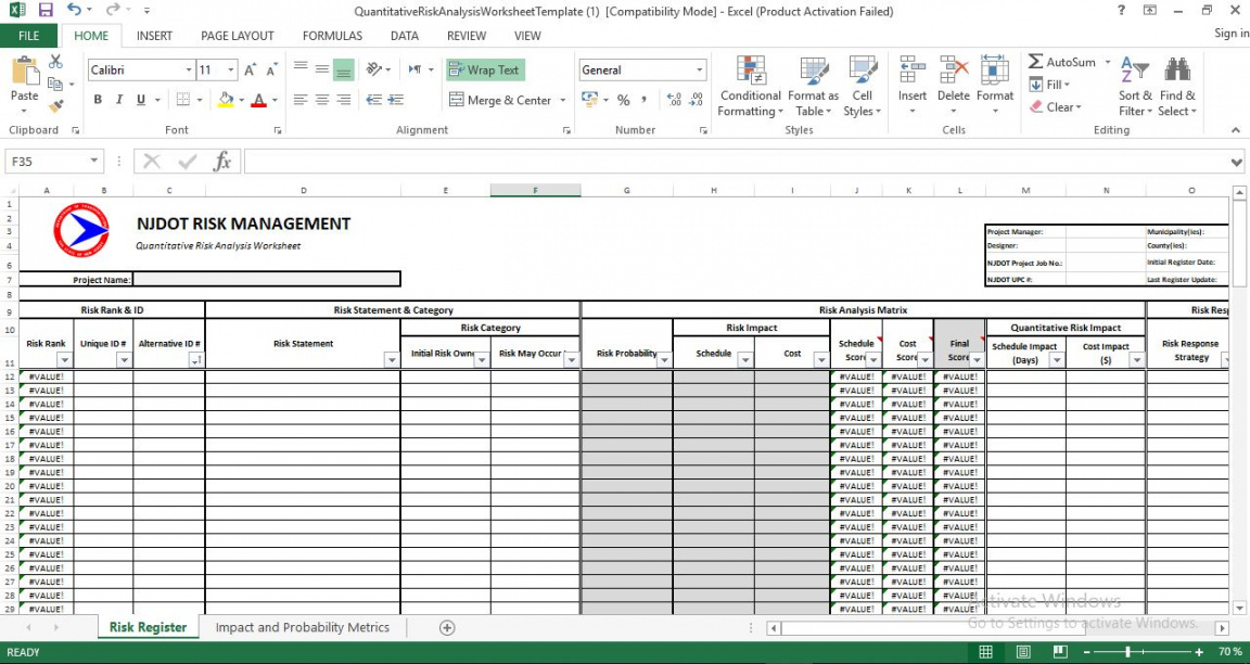 editable quantitative risk analysis excel template  engineering management it risk analysis template pdf