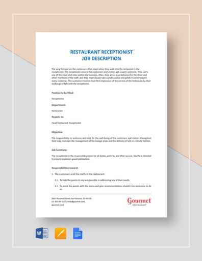 Free Editable Legal Receptionist Job Description Template Doc Sample