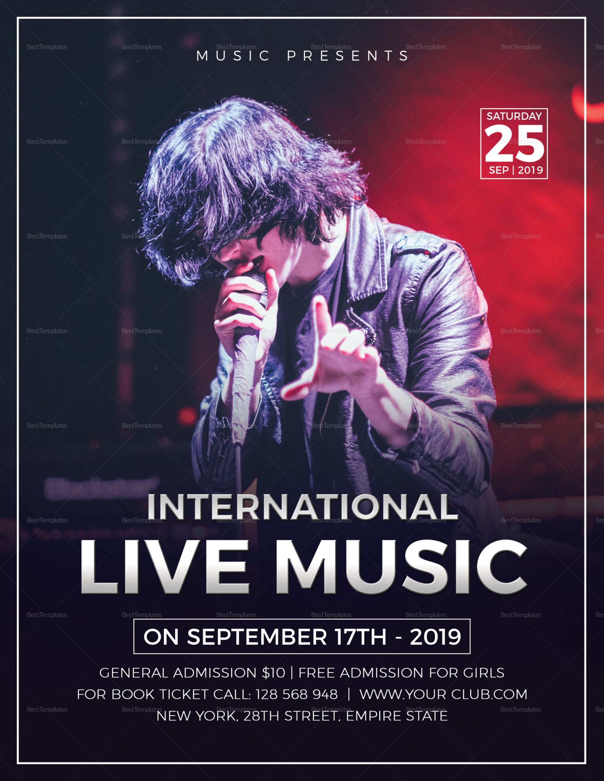 Live music flyer template, Flyers are all informational newspapers about a specific company or an event which is being organized by some company. Flyer printing is a process of informing the general public about any new offers of sales or discounts as being supplied by a company or business. These informative flyers are good source of informing masses of neighborhood market about the newest developments taking place in different locations, like every new solution, new event etc.. Flyers have evolved as one of an effective manner of immediate communication with the customer.
