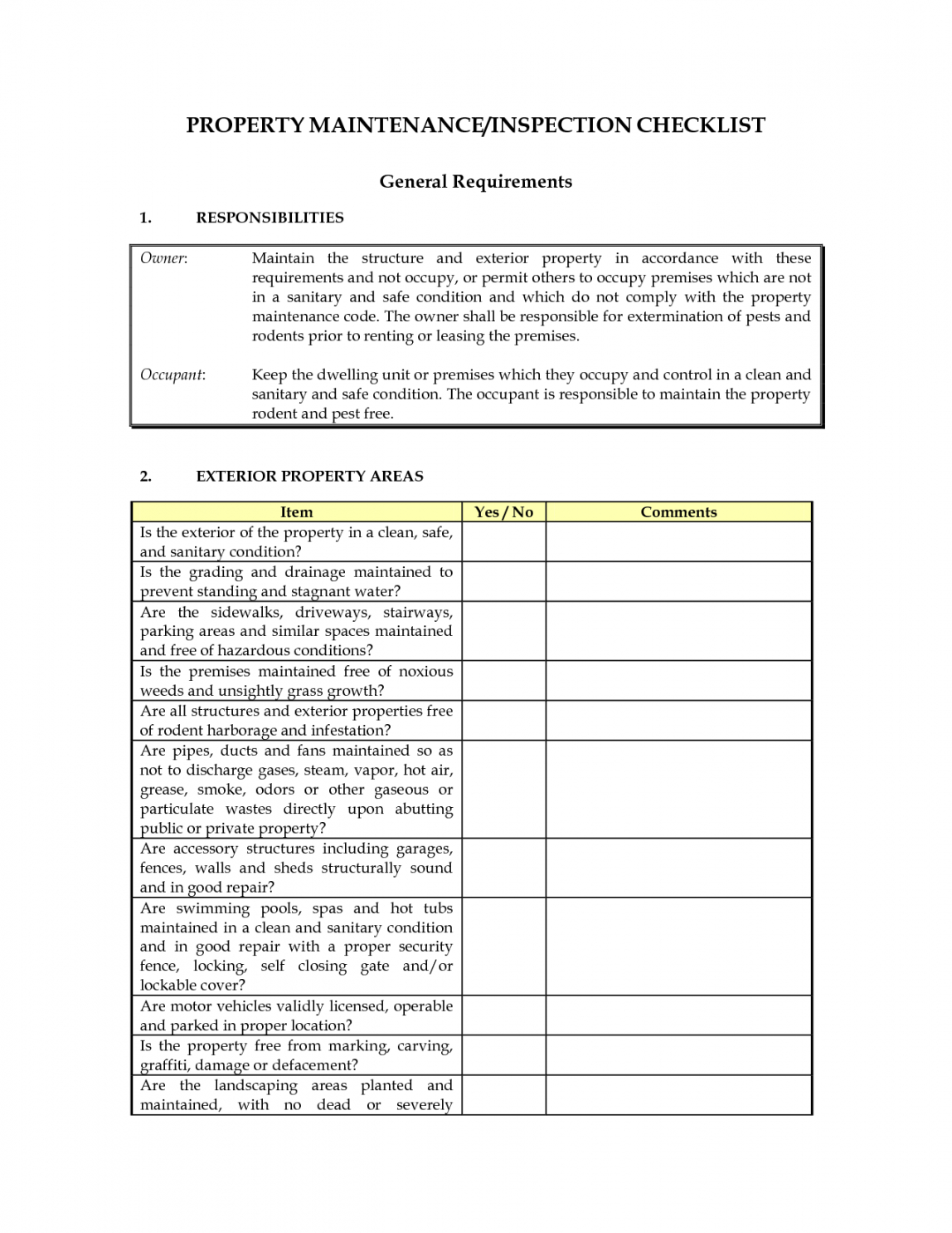 printable property maintenance  inspection checklist  legal forms and maintenance inspection checklist template pdf