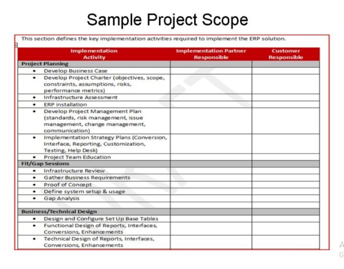A well-prepared project scope should include several critical parts. These typically include a project description, explaining the project’s aim and intentions; a clear breakdown of outcomes, indicating what the project will deliver; a defined timeframe with milestones and deadlines; a breakdown of roles and responsibilities, clarifying who is responsible for each task; and a budget outlining the project’s costs. It is a smart move to get it formally agreed upon.
