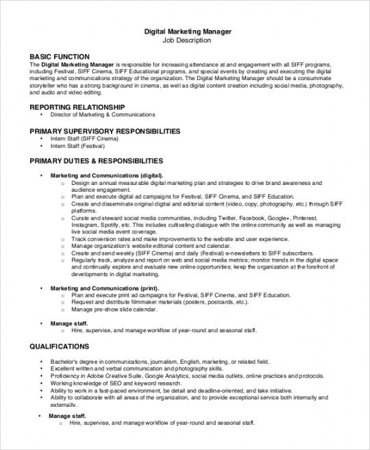 free 9 sample marketing manager job descriptions in pdf marketing manager job description template pdf
